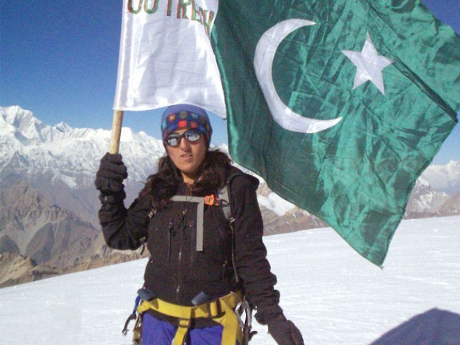Samina Khayal Baig, the first Pakistani lady who climbed the world's highest peak, Mount Everest - 8,848 metres. She was accompanied by his elder brother, Mirza Ali who guided her during her mission. She is the pride for the whole nation of Pakistan who had dared to step the highest peak with high spirit and courage.